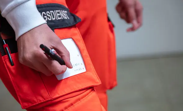 Praktische Hosentaschen-Blöcke, perfekt abgestimmt auf die Rettungsdiensthosen mit Sichtfenster am Rechten Oberschenkel - der Rechtsschenkelblock®